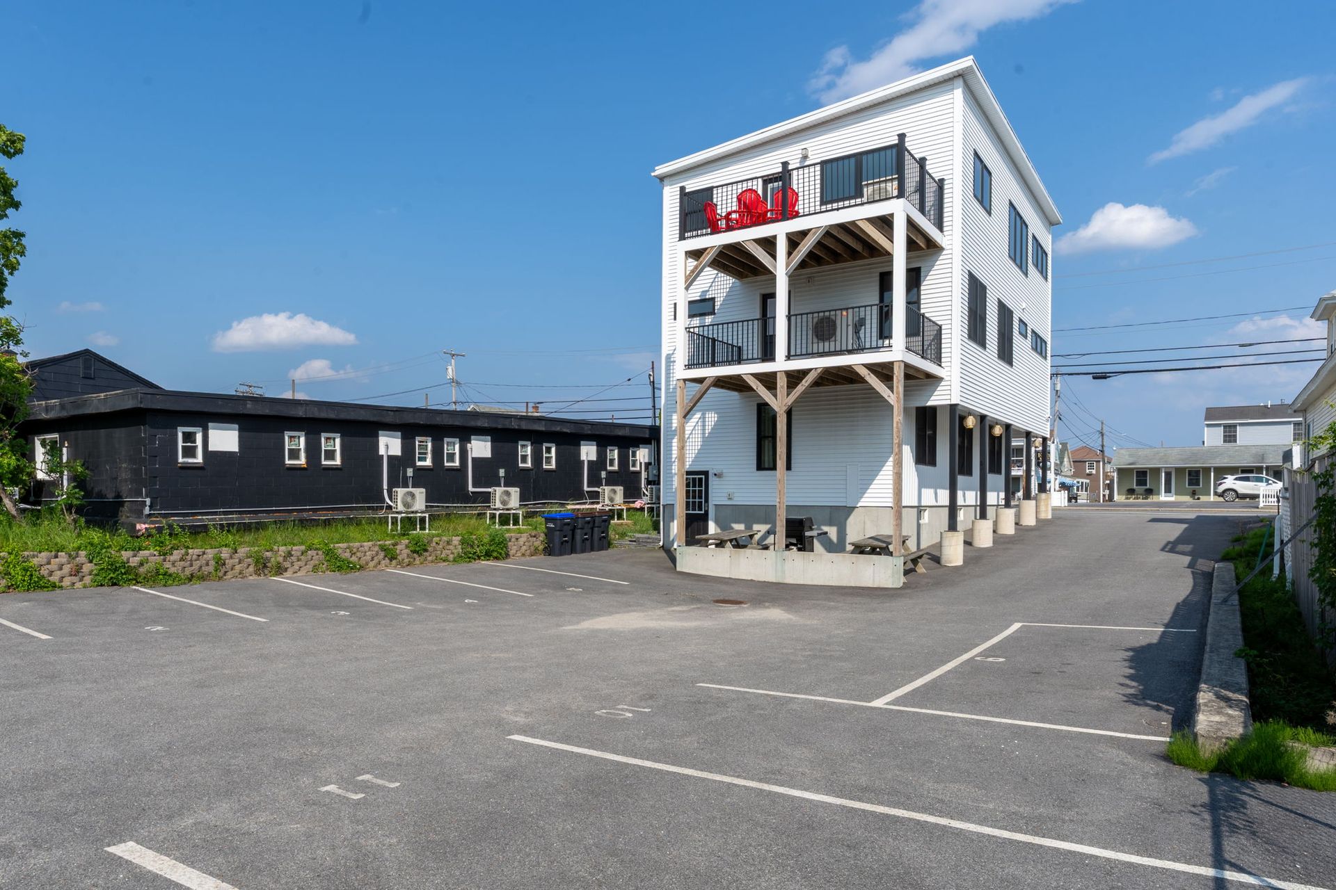 Saturday to Saturday weekly rental on-season. Experience luxury living in this exquisite 5-bedroom, 3.5-bathroom home, located just across the street from Echo Motel. Built in 2021, this stunning property seamlessly blends modern design with the charm of coastal living. A unique layout allows for amazing views of the ocean and marsh. The first floor could be it's own living space, great for multi-generational trips, or families traveling together but wanting a bit of privacy. The main house is featured on the second and third floors. The first floor features 2 queen bedrooms, 1 bath and full kitchen. The second floor features the master ensuite king bedroom with futon, a queen bedroom, a two twin bedroom, a full bathroom, washer & dryer, and a rear deck. Situated on the top level is the main living quarters, featuriong the main full kitchen, pantry, living room, 1/2 bath, and a rear and front deck. Private gas grill located in the rear of the house. Pool access at the Motel, and a short walk to the beach. Parking for 3 cars maximum.